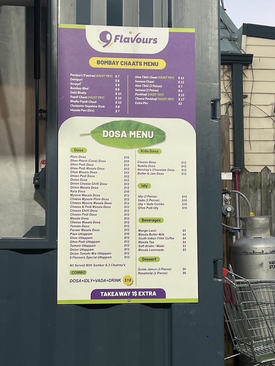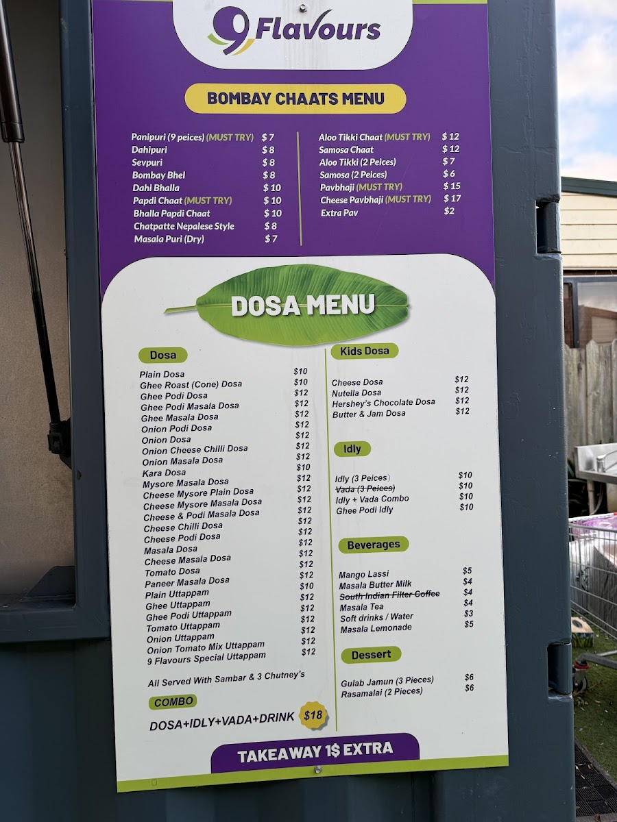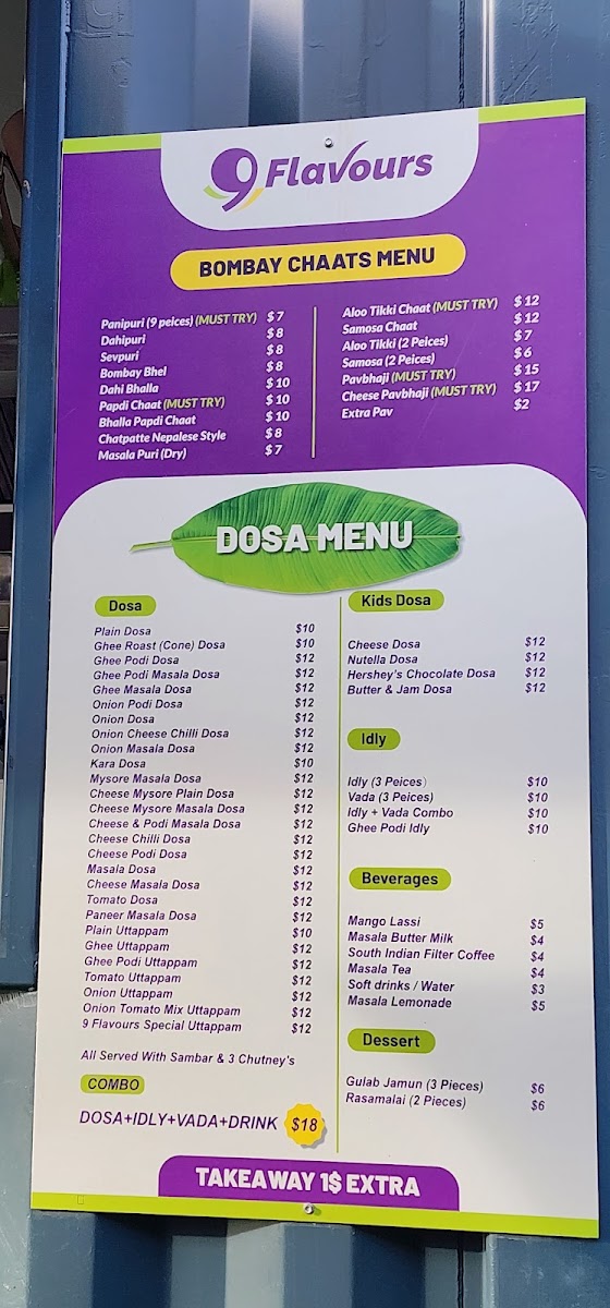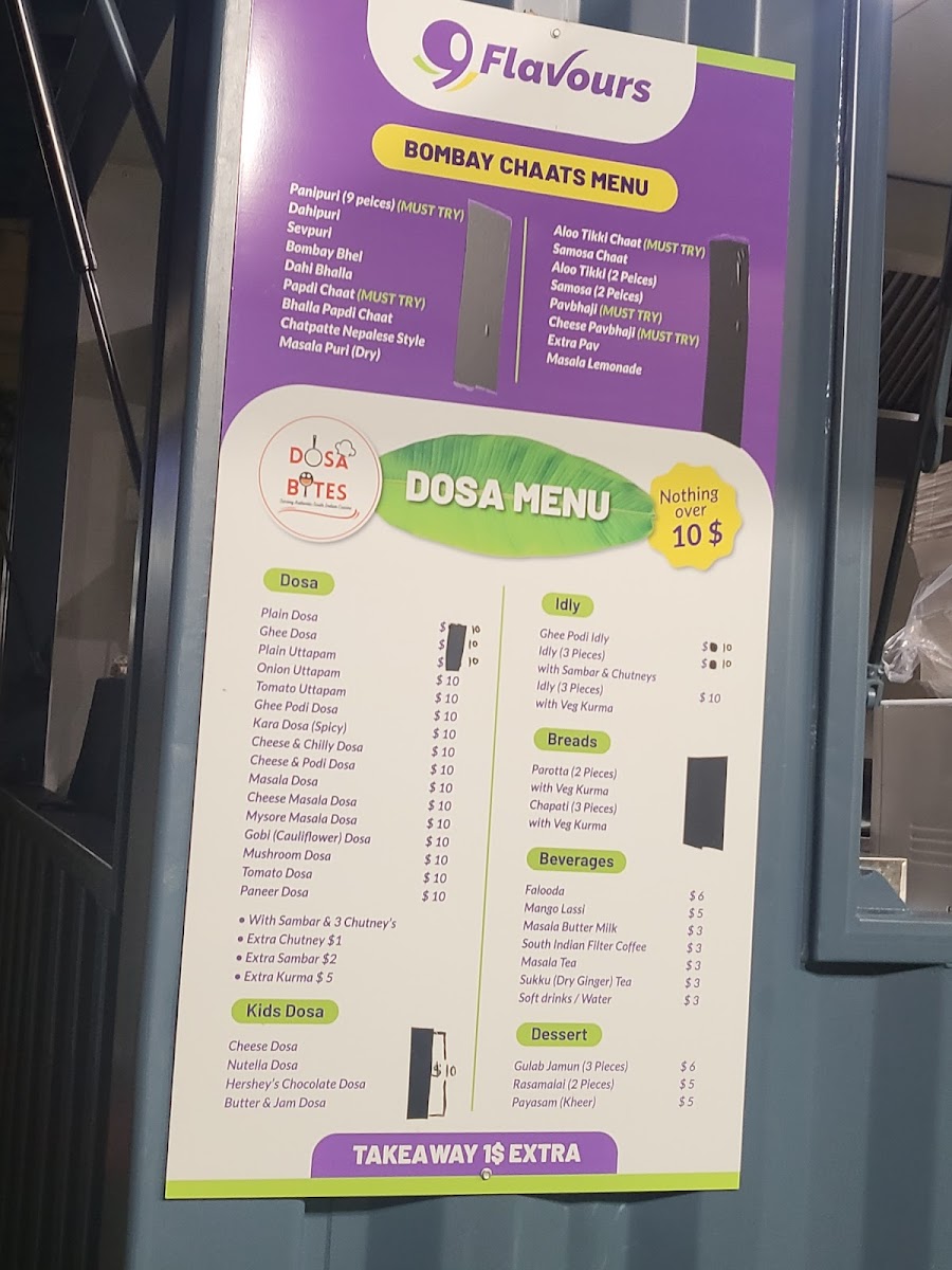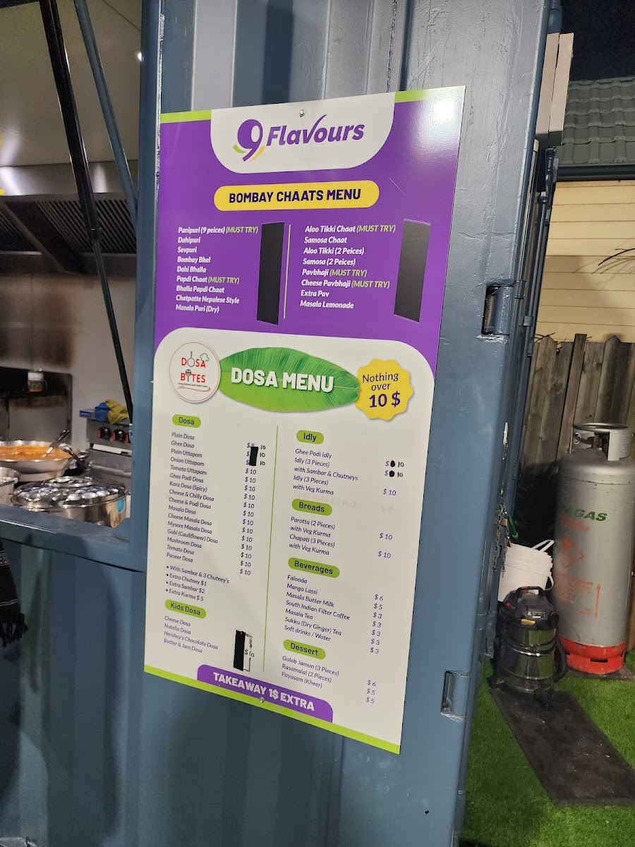 Welcome to 9 Flavours Restaurant, a hidden gem located at 65 Wigram St, Harris Park. This vibrant eatery specializes in authentic Indian cuisine, offering a delightful menu that showcases a variety of mouthwatering dishes. Signature items such as Idly, ghee podi Idly, and the beloved Pav Bhaji earn rave reviews for their freshness and rich flavors. Diners frequently commend the ginger chutney served with dosas, enhancing the meal's delight. Each dish is not only affordable but also quick to serve, making it perfect for casual gatherings with friends or family.